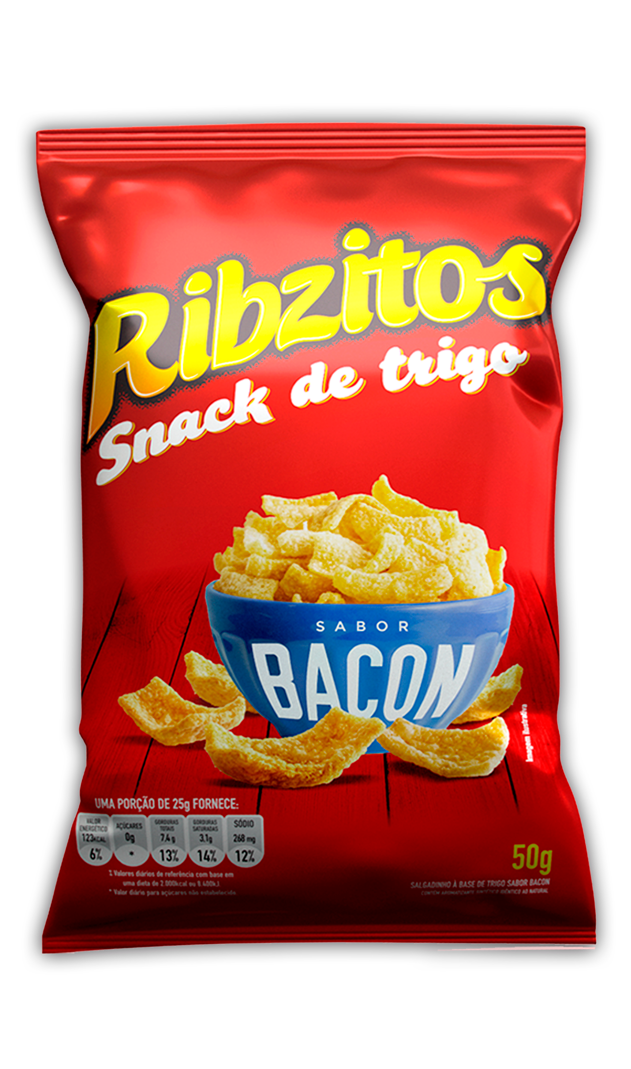 Conheça os Ribzitos sabor Bacon - o snack de trigo irresistível que vai te conquistar! Delicie-se com o autêntico sabor de bacon em cada mordida. Uma explosão de sabores em um lanche crocante e viciante. Saboreie a intensidade do bacon com os Ribzitos. Prove agora mesmo essa experiência única!